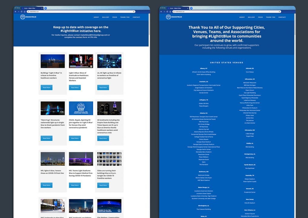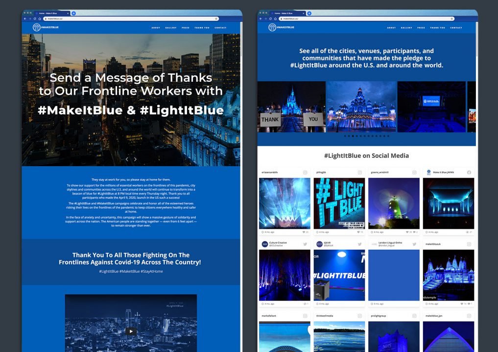 In response to the global pandemic, I led the digital design and development for #LightItBlue and #MakeItBlue—a social media and environmental movement dedicated to supporting frontline workers. What began as a local tribute in the U.K. was scaled into a global phenomenon across 22 countries. I was responsible for architecting the campaign’s digital presence and creating the technical assets that powered the movement across major international landmarks and digital hubs.